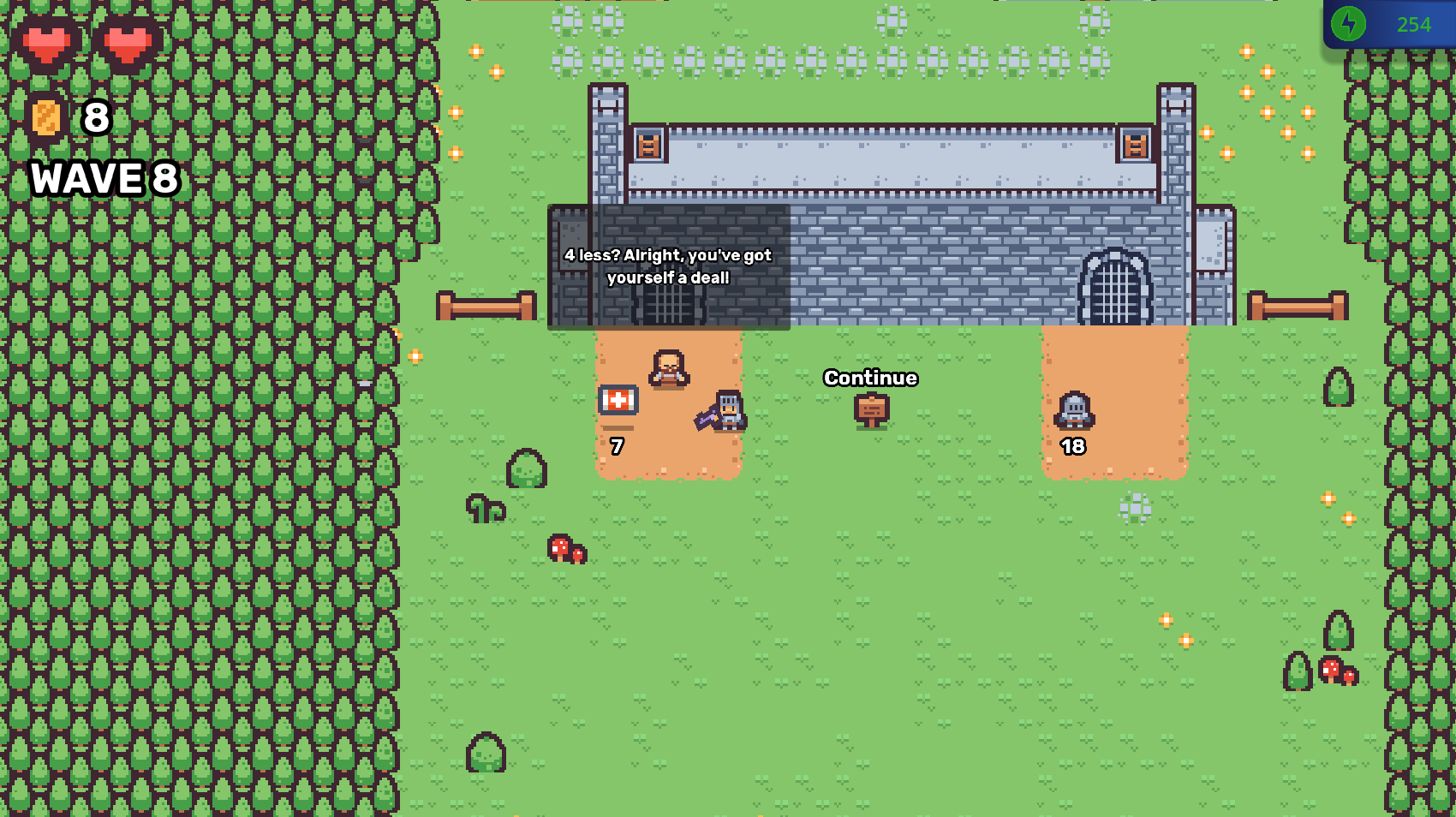 Arcade game where you can haggle with the shopkeeper and hire mercenaries by talking to them.